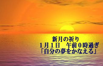 さあ、新しい年が始まります。新月と重なった年変わりの日は、私達の古い自分を捨て去り、新しく生まれ変わる日でもあります。来年は、今までの中でも、最高の1年になりますよ。ぜひご一緒させてください。 新月の祈りのお約束です。メンバー以外のゲストの方。歓迎させていただきます。まず、自分の名前が書かれているグループを探してください。もしなければ、メールに願い事の内容を書き、急いでお知らせ下さい、ゲストの方は、次のような言葉を唱えてください。もちろん下のような意味であれば、どのような言い方をされても、結構です。「私達は、今、お互いの夢を実現させるために、協力しあいます。光の精霊よ(ここは、あなたの好きな神様の名前でOKです)、私の願いを聞き入れ、私と、私の仲間のために、お力をお貸し下さい。」そして、1人1人の名前と願い事をよんであげてください。自分の属しているグループの願い事を全て読み終わったら、「全ての人の願いが、速やかにかないますように。」と祈りの言葉を終了し、静かに、瞑想に入ってください。そして適当な時間に終了してください。31日の深夜は1時ごろには終了します。メンバーの方は、自分の名前が書かれているグループを探してください。もしなければ、メールに願い事の内容を書き、急いでお知らせ下さい今回はアバンダンティアとアテナを使用しますので、2人の女神と、繋がってください。そして、次のようにとなえます。「豊かさの女神アバンダンティアよ、私達を光の精霊とつなげ豊かさをもたらしてください。そして行動と叡智の女神アテナよ、私達にの夢を実現する勇気と知恵をお与え下さい。そして、光の精霊達よ、どうか、私と仲間達のためにその力をお貸し下さい。」そして、1人1人の名前と願い事をよんであげてください。自分の属しているグループの願い事を全て読み終わったら、「全ての人の願いが、速やかにかないますように。」と祈りの言葉を終了し、静かに、瞑想に入ってください。そして適当な時間に終了してください。31日の深夜は1時ごろには終了します。今回のサポートエネルギーは、人の魂の指導役であり、人の魂の可能性を開く役目を持つ「イエスの光」です。また、12月31日の夜12時から、共通の祈りの会を始めますが、その時一緒にできない方は、1月4日までに必ずサイトに入って、上の手順で祈ってください。今回の了解コメントは、願い事の各グループの下のコメント欄にお入れ下さい。
