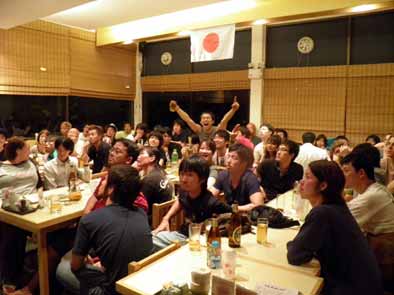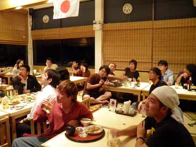 やりました。日本代表!宿敵韓国をPK戦の末、撃破しました。注目の一戦。竹亭カオサン店には、大勢のサポーターが集まってくれました。日本人だけではありません。韓国人も中国人もタイ人も西洋人も、試合を見に来てくれました。全部で70、80人位いたと思います。私も仕事が忙しかったけど、途中から応援に集中。大事な場面では、お客さんに呼ばれても気がつかない振り、見えない振りしてしまったり。。。(すいませんでした。笑)そして、延長戦終了間際のまさかの同点弾被弾。相手のペ-スでPK戦突入となって、前回の嫌な記憶が頭をよぎりました。でも、やりました。ここまで不調気味だった川島が、韓国のシュートを3本連続で止めました。試合終了まであと数分という所で同点にされた時、心が折れそうになったと思います。でも、日本代表。またもや逆境をはねのけました。素晴らしい精神力です。今夜の日本人サポーター達。全員、興奮と感動と歓喜に酔いしれて満面の笑顔で帰っていきました。本当によかったです。 私も雄たけびをあげすぎて、声が少し枯れました。さあ、次はいよいよ決勝戦。相手はオーストラリア。相手に不足はありません。今度も激戦必至です。29日(土)夜10時キックオフ。ご都合のつく方は、ぜひ竹亭カオサン店にお越しください。みんなで一緒に応援しましょう。私はこれからカオサン通りのアイリッシュパブに、生ビールを飲みに行ってきます。日記を気に入っていただけたら、ぜひクリックをお願いいたします。皆様の応援クリックとコメントにパワーを頂いて、このブログを続けさせて頂いています。最新の人気ブログとの新しい出会いもありますよ。