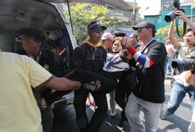 Bangkok Post昨日の午後1時半ごろ、再びデモ隊に白昼の手榴弾テロがありました。負傷者が28名出ています。BTSアヌサワリー駅近くの戦勝記念塔反政府デモ会場において、手榴弾が爆発しました。事件直前に5,6名の不審な男達がオートバイで会場にやってきたのが目撃されています。そして一味の一人が手榴弾を投げる様子が近くの監視カメラに鮮明に録画されていて画像が公表されました。爆発後、近くにいた警備員とデモ参加者が男達を追跡。しかし、彼らは逃走中にさらに手榴弾を投げつけたうえで発砲して、オートバイで逃げ去ったそうです。その後、ジェーンワタナ地区のデモ会場でも発砲騒ぎがありましたが、幸い負傷者は出ていません。お互いに妥協を知らない政府と反政府運動の争いはいよいよエスカレートしてきて、大きな騒乱に発展する事態がいよいよ心配です。タナサット軍総司令官も、国家のために両者に話し合いによる解決を再三求めていますが、いまのところその気配もありません。なお、日本でも大きく報道されているようですが、デモ隊のいないバンコクの多くの地域は平静です。デモ隊にさえ近づかなければ、特別なリスクも危険もありません。伊勢丹、セントラルワールド、パラゴンなどは、閉店時間を夕方6時に早めて営業を続けています。もし、この日記を楽しんで頂けたら、下の3つのブログランキンのアイコンにぜひ応援クリックをお願いいたします。皆様から頂く貴重な一票とコメントを励みに更新しています。^^どうぞよろしくお願いいたします。 竹亭の宣伝です。^^バンコクで日本の味が恋しくなったら竹亭へぜひどうぞ。手頃な値段でほっとする味をお楽しみください。160バーツからの定食類は昼も夜も同じ値段。おつまみも多数、居酒屋的利用もお座敷で宴会も出来ます。ガッツリ食べたい時は、名物481バーツの食べ放題をどうぞ。タイ人スタッフとの新年会、パーティーにも最適です。低予算で大満足してもらえますよ。シーロム・ソイ10店(電話02-234-2345)、バンラック店(電話02-233-0384)