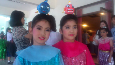 先日、娘が通うラジニ学園でコーンと呼ばれるタイ伝統仮面劇の公演がありました。出演者は同校のタイダンスの生徒達。そして、男性教師2名も特別出演のオカマ役で参加しています。^^実はうちの娘もタイダンスを習っていて出演です。劇ではラーマヤーナの物語の魚の役をやりました。ハヌマン(猿神)が海を渡る橋を作ろうと投げこんだ岩を取り除く役目です。頭にお魚ちゃんのオブジェをつけて、ドライアイスの煙の海をすいすいと泳いでいました。娘自慢になりますが、彼女には踊りの才能があるようです。娘は身体に余分な力を入れずに柔らかいタッチで可愛く踊ります。幼稚園の時から、こういうイベントではいつも必ず最前列に選ばれます。私は何をやっても力み過ぎるほうだし、妻も運動は苦手。一体誰に似たのだろう。勉強が苦手なのと、強制されることが大嫌いなのは私似ですが。(爆)デジカメが不調で劇の写真は無いですが、公演後に娘と友達のジェルちゃん達(全員小学校2年生)とスマホで記念写真。私はこの子が可愛くて可愛くて仕方がありません。我儘言って泣き叫んでいる時でさえ、愛しくてつい微笑んでしまいます。もし、この日記を楽しんで頂けたら、下の3つのブログランキングのアイコンにぜひ応援クリックをお願いいたします。皆様から頂く貴重な一票とコメントを励みに更新しています。^^どうぞよろしくお願いいたします。 竹亭の宣伝です。^^バンコクで日本の味が恋しくなったら竹亭へぜひどうぞ。手頃な値段でほっとする味をお楽しみください。160バーツからの定食類は昼も夜も同じ値段。おつまみも多数、居酒屋的利用もお座敷で宴会も出来ます。ガッツリ食べたい時は、名物481バーツの食べ放題をどうぞ。タイ人スタッフとの新年会、パーティーにも最適です。低予算で大満足してもらえますよ。シーロム・ソイ10店(電話02-234-2345)、バンラック店(電話02-233-0384)