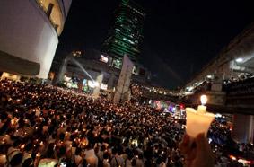 10日(月)夕方6時、サイアムのバンコク芸術文化センター前に白衣を着た平和を求める人たちが約1000名が集まり、運動のシンボルであるロウソクを灯して衝突と流血を招きかねないバンコク封鎖デモ中止と総選挙の実施を訴えました。またバンコク市内のチュラロンコン大学、カセサート大学にも数百人が集まりロウソクを灯しました。9日にはナコンパトム県、マハサラカム県でも同様のイベントが行われ、チェンマイ県、チェンライ県、ウボンラチャタニ県でもキャンドルデモが予定されています。反政府デモに比べて参加者の数は桁違いに少ないですが、今回のバンコク封鎖デモに疑問を呈しているバンコクっ子も増えています。一方、バンコク隣のパトゥンタニ県では反政府デモ隊と赤服デモ隊が衝突。拳銃の発砲とピンポン爆弾が投げこまれて6名が負傷、うち3名は重症だそうです。また、アメリカ大使館はバンコク在住の同国民に対して、万が一の事態に備えて2週間分の食糧、飲料水、医薬品、その他の生活必需品を備蓄すると共にモーバイル機器は常に充電しておくようにとのアドバイスを出しています。それから、選挙管理委員会は政府に対して、このままでは正常な総選挙は実施できないとして2月2日の投票を延期するよう再び要求したとの報道が流れていますが、そういう事実はないと選挙管理委員会が否定したとの報道もあります。真偽のほどは不明です。なお、13日は日本人学校を含む多くの学校が臨時休校となります。それが何日間続くのかはわかりません。娘の望のラジニ学園も休校です。娘はとりあえず喜んでいるかな^^;タクシン氏を巡ってタイを真っ二つにした亀裂は深まるばかりです。悲しいことですね。もし、この日記を楽しんで頂けたら、下の3つのブログランキングのアイコンにぜひ応援クリックをお願いいたします。皆様から頂く貴重な一票とコメントを励みに更新しています。^^どうぞよろしくお願いいたします。 竹亭の宣伝です。^^バンコクで日本の味が恋しくなったら竹亭へぜひどうぞ。手頃な値段でほっとする味をお楽しみください。160バーツからの定食類は昼も夜も同じ値段。おつまみも多数、居酒屋的利用もお座敷で宴会も出来ます。ガッツリ食べたい時は、名物481バーツの食べ放題をどうぞ。タイ人スタッフとの新年会、パーティーにも最適です。低予算で大満足してもらえますよ。シーロム・ソイ10店(電話02-234-2345)、バンラック店(電話02-233-0384)