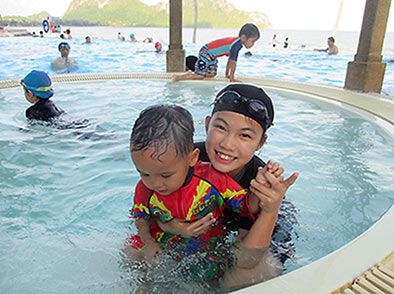 海やプールで泳いだりバンコクより3割安くて新鮮で美味しいシーフードを楽しんだりしています。