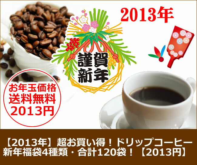 楽天市場のコーヒー専門店「神戸ベイサイドカフェ」にて 元旦に買った福袋が届きました。正月休み明けの発送... ドリップコーヒー新年福袋 送料無料で2013円 プレミアムブレンドロイヤルブレンドブラジルサントスコロンビアスプレモが各30袋 計120袋 かなりお買い得 1杯あたり16円のお年玉価格 販売期間は1月4日で終了しています。ご注意ください。 「にほんブログ村」・芦屋情報のランキングに参加中ですよろしければポチッとクリックをお願いします。