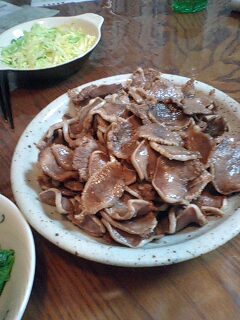 好きです タコはは 好きです タコはは好きです タコはは 好きです タコははいらっしゃいませー ようこそ 「居酒屋 タコはは」 へ何名様ですか?ハイ 4名様 お席の方へご案内致しまーす。それでは本日のおすすめメニューのご案内をさせて頂きまーす。本日のおすすめは 「タン焼き」 です。薄切りタイプを一度湯通ししてアク抜きしてから、板長タコちちにバトンタッチして、ガーッと炒めてパパッと塩コショウをふったら出来上がり!千切りキャベツも準備して、お好みでレモン汁、豆板醤、コショウ等ブレンドしたタレでお召し上がり下さい。せっかくですからワインも頂きましょうかね。その他に 「茎ワカメの煮物」 はいかがでしょうか。塩漬けの茎ワカメを一晩塩抜きした後、ケーキ用のフォークで細く裂いて3センチぐらいにカットして、醤油、砂糖、味醂、化学調味料、根ショウガを入れ中火で10分ぐらい煮込んで出来上がりです。それから 「かぼちゃの煮物」 も有りますよ。緑黄色野菜はなるべく摂取したいですよね。かぼちゃには当たりはずれが有りますが、1/2カット¥128だったのでお試しで買ってみてお砂糖控え目に煮込んだらまいうーでしたから、今回は当たりでした。お飲み物はお決まりですか?はい 生ビール4つお願いしまーす。好きです タコはは 好きです タコはは好きです タコはは 好きです タコははあら タコ監督さん いらっしゃいませー 韓国戦 負けちゃいましたね。悔しいです今夜は凹んでるタコ監督が訪れた 「北の田舎町の居酒屋さん」 メニューでした。タコははの手帳より「平成18年1月27日 ダイエット12ヶ月27日目夕食メニュー」味付けジンギスカンで野菜炒め、トマトジュース体重57.4