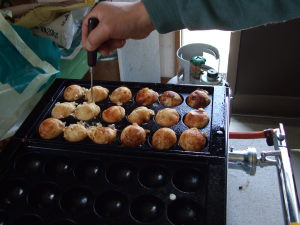 今日は4月の桜祭りの屋台から登場する新メニューのプロジェクト 「TYO」 でした。だから 「TYO」 なんですよ。 「TYO」 「たこ焼きお勉強会」を ちょっとカッコよく略して 「TYO」 としてみました。ちょうどよく師匠が来てくれてお手並み拝見!新品の鉄板はたっぷり油を馴染ませないといけないそうです。さっそく試食タイム♪さすがは師匠! お家の電気たこ焼き機で練習してるから、超まいうーでーす。師匠が帰った後、火加減や上手くまとめて丸くして行くタイミング等を練習して、お昼もたこ焼き、三時のおやつもたこ焼きで当分食べなくてもいいぐらいに試食しまくりでした。と言う訳で、夕食はせっせと焼いた 「たこ焼き」 の在庫処分をお願いしまーす。それから昨夜の残りの 「おさかなバーグ」 と頂き物のおいしい 「たくあん」 もありますよ。 さてさて、次回のプロジェクト 「TYO」 は、師匠直伝のブレンド生地で様々な課題をクリアして本番に向けて、焼いて焼いて焼いて焼いて、回して回して回して回る~♪ってか!タコははの手帳より「平成18年2月7日 ダイエット13ヶ月7日目夕食メニュー」焼き豆腐煮物、蕗の炒物、トマトジュース体重56.6