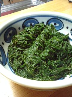 いらっしゃいませ ようこそ 小料理 タコははへ!美人???ブヒ! 女将のタコははです。どうぞ ごひいきに さあさあ カウンターの席にどうぞ!本日は新鮮、たっぷり美味しい 「お裾分けフェア」 となっております。まず最初のおすすめは 「三陸 洋野町産の新鮮マツモ」 です。高級品の生マツモを沢山頂きましたよ。勿体無いけど鮮度が命ですから一気に頂いてしまいましょう。湯がいて直ぐに水にさらしてポン酢をかけてお召し上がり下さい。コリコリとした歯ごたえと海のかほりが堪りませんね。大変御馳走様でした。そして同じく 「三陸 洋野町産ふのり」 もいっしょに頂きました。こちらは明日の味噌汁に入れて、朝一番に海のかほりを楽しむ事にしましょう。それから実家の母特製 「たくあん」 はいかがでしょうか。やっぱり、おふくろの味はありがたいですね。その他にお肉屋さんの 「揚げたてトンカツ」 にキャベツ千切りを添えて、どうぞお召し上がり下さい。まずは おビールですね。いらっしゃいませ あら タコちゃん いつものジャキーですね。 たーーーーっぷり お願いします!今夜はお裾分けフェアにちゃかり便乗しちゃったタコちゃんが訪れた 「北の田舎町の居酒屋さん」 メニューでした。タコははの手帳より「平成18年1月10日 ダイエット12ヶ月10日目夕食メニュー」残り物(トリの水炊き等)、トマトジュース体重59.0