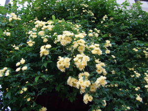 タコ家では黄色のモッコウバラが咲き始めましたよそれではさっそく タコははの歌とタコちゃんのナビゲーターで、どうぞごゆっくりお楽しみ下さーい バラが咲いたバラが咲いた 黄色のバラが~ 寂しかったボクの庭にバラが咲いた~ たっくさーん咲いたバラ 小さなバラ達で~ 寂しかったボクの庭が明るくなった~ バラよバラよたっくさーんのバラ~ そのままでそこに咲いてておくれ~~~~~ バラが咲いたバラが咲いた 黄色のバラが~ 寂しかったボクの庭にバラが咲いた~ お近くの方はどうぞ見に来て下さいね。 (って家知らないか!)タコははの手帳より「平成18年3月28日 ダイエット14ヶ月28日目夕食メニュー」肉じゃが、トマトジュース体重57.2