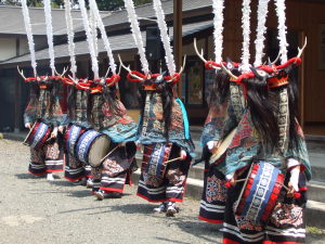 今日は花巻文化村の桜祭りに行ってきました。好天に恵まれて、暑くて半そででもいいような陽気でしたよ。かつて宮沢賢治が農民とともに暮らしたこの地の伝統ある 「山鹿踊り」 を間近で見る事が出来て、感動しました。館内には井堂雅夫画伯の作品が至る所に展示されて、画伯も気さくお話して下さいました。「山鹿踊り」の襖絵はいつ見ても素晴らしい物ですね。おやつは画伯の絵に囲まれておいしい 「きりさんしょ」 に熱いお茶がサービスでした。外ではピエロさんが見事な手さばきでバルンアートのプレゼントをしていました。その他に屋台のタコ焼き、お好み焼き、お餅等食べながら、お神楽を見たり、フリマを覗いたりしてたっぷり楽しみましたとさタコははの手帳より「平成18年3月10日 ダイエット14ヶ月10日目夕食メニュー」カレー、トマトジュース体重56.6