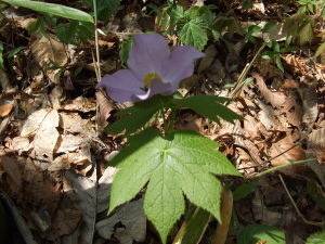 今日は午前中、裏山へちょっぴり散策に行ってきました。(別名山菜採り)林の中では山野草の女王クラスの 「シラネアオイ」 が可憐に佇んでいました。このお花は山野草にしてはお花も大きく、草丈が20~30センチぐらいなので斜面のあちこちに咲き誇っている姿はちょっとゴージャスって感じですね。園芸店等で綺麗な鉢に植えられて高価な値札を付けられた彼女よりも、急峻な斜面で花茎も細くか弱いながらも大輪で凛と咲く花の青色の鮮やかさには心癒されますから、昨年は見逃したので今年はとてもラッキーでした。 そして、午後からは先日施釉した表札が焼きあがったので工房へ引き取りに行ってきました。窯の神様にお祈りしたお陰で、何とか綺麗に焼き上がりほっとしました。 師匠、いつもありがとうございます。蔦の飾りは薄いグリーンの釉薬が綺麗に発色して、ブルーガラスの青色もムラなく溶けて、文字の隙間にもガラスが上手く入り、いい具合に仕上がりました♪来週早々、施主様のお宅へお嫁入りなので、雨の日も風の日も玄関の脇で明るくご家族様とお客様をお出迎えする事を祈りつつ、綺麗にラッピングして送り出してあげましょうね。タコははの手帳より「平成18年3月17日 ダイエット14ヶ月17日目夕食メニュー」牛スジの煮込み、トマトジュース体重56.2