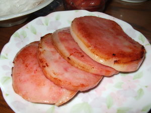 好きです タコはは 好きです タコはは好きです タコはは 好きです タコははいらっしゃいませー ようこそ 「居酒屋 タコはは」 へ 何名様ですか?ハイ 4名様 お席の方へご案内致しまーす。それでは本日のおすすめメニューのご案内をさせて頂きまーす。本日のおすすめは 「厚切りハムステーキ」 です。焼き方はハムだからって侮ってはいけませんよ。テフロンのフライパンに油なしの中火でじーっくり焼きながら、お肉と同じで表面が汗をかき始めるまで触らないようにしてハムからの油を出していき、両面うっすら焦げ目が付いたら食べ頃です。程よくお味もついているからそのまま新玉ねぎスライス等をトッピングしてどうぞお召し上がり下さい。お中元とかお歳暮の時期にTVのCMで4~5センチぐらいの超厚切りのハム焼いてますけど、あんなに厚いと中まで火が通るのに時間がかかって表面がガバガバ硬くなって、焼き肉の時に端っこで忘れられて焦げたウインナーみたいで美味しくないですよ。せっかくの高級ハムなんだから程よい厚みのステーキで美味しく味わいたいですよ!まぁ、心配しなくてもそういう高級な物は何かで当たらない限り何処からも届かないか!それから 「コールスロー」 はいかがでしょうか。今日はキャベツ、春雨、ちくわにカロリー70%カットのマヨネーズとお酢をひと振りしてみました。こちらはおかわり自由となっておりまーす。そして 「新玉ねぎスライス」 もたっぷりご用意致しました。スライスして4~5回水を変え晒したのですっかり辛味も抜けましたから、鰹節とポン酢でさっぱり、しゃきしゃきとした食感をお楽しみ下さい。お飲み物はお決まりですか?はい 生ビール4つお願いしまーす。好きです タコはは 好きです タコはは好きです タコはは 好きです タコははあら タコちゃん いらっしゃいませ。 いつものジャーキーですね。超厚切りで (それ消費者の声ですか?)今夜は超厚切りジャキーがご希望のタコちゃんが訪れた 「北の田舎町の居酒屋さん」 メニューでした。 タコははの手帳より「平成18年4月5日 ダイエット15ヶ月5日目夕食メニュー」職場飲み会(お寿司)、トマトジュース体重56.6