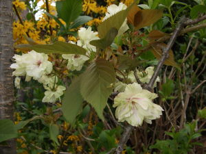 初夏のような日が続いてお庭の花達の競演が始まりました。まずトップは開花から徐々にピンク色に変わっていく 「ウコン桜」 です。それから燃えるような赤の 「ボケ」 です。車庫の柱に這わせた 「白藤」 も今年は沢山花が咲きました。 「ハナミズキ」 は精一杯咲いて赤白合戦ですね。 そして昨年種まきして育てたパンジーもGW中に何とか植えましたよ。今年はほとんどの苗がちゃんと育って花付きも良く、昨年の内に二か所にお嫁入りした苗達も元気に咲いているそうですから育てた者としては嬉しい限りですね。さてさて、植え付けですがあちこちの花壇を参考にして、同系色でまとめて植えてみましたがいかがでしょうか。やっと 植えたか (ちっ!)タコははの手帳より「平成18年3月18日 ダイエット14ヶ月18日目夕食メニュー」餃子、トマトジュース体重56.6