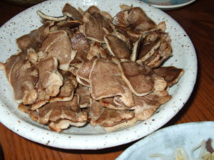 いらっしゃいませ ようこそ 小料理 タコははへ!美人???ブヒ! 女将のタコははです。どうぞごひいきに さあさあ カウンターの席にどうぞ! 最初のおすすめは 「スペシャル冷奴」 です。今日は行者ニンニクの醤油漬けをトッピングした春限定スペシャルタイプとなっております。この行者ニンニクはタコちちの担当で、生の葉を細かく刻みお醤油に漬けるだけのカンタン醤油漬けですが、そのまま食べても美味しいので酒の肴にもいいんですよ! 但し食べ過ぎるとニンニクの匂いが翌日に影響しますので悪しからず。 それから 「もやしとちくわの和え物」 はいかがでしょうか。先日のメガヒットもやしにきゅうりも仲間に入れバージョンアップしてより一層美味しくなりましたよ。そしてメインディッシュは 「トリ蒲焼」 をご用意致しましたのでどうぞお召し上がり下さい。 いきなり冷凍庫からの登板になりましたが、レンジで解凍して味が馴染むようにホークで数か所突き刺したら塩コショウ、焼き肉のタレ、醤油を全体にまぶして暫く置いてから180°のオーブンで50分焼いて出来上がりです。冷ましてからカットすると綺麗に出来上がりますよ!まずはおビールですね。 あら タコちゃん いらっしゃいませー 今日はスペシャルなメニューですよ! タコ スペシャル (ジャーキー大盛ってか!)今夜はスペシャルスマイルのタコちゃんが訪れた 「北の田舎町の小料理屋さん」 メニューでした。タコははの手帳より「平成18年3月26日 ダイエット14ヶ月26日目夕食メニュー」煮込みハンバーグ、トマトジュース体重57.2