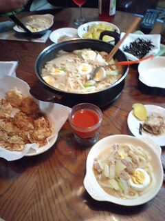 いらっしゃい ようこそ 「コリアンダイニング」 タコははへ!美人???ブヒ! オモニ タコははです。アニョハセヨー カムサハムニダー ゴマスミダー 本日のおすすめは 「スンドゥブチゲ」 です。因みにこれはタコはは用のノーマルタイプなのでお好みでキムチたっぷりでお楽しみく下さい。今日は日中も真冬日でとっても冷えたのでチゲ鍋で温まって頂きましょう!白菜の葉先をたっぷり入れて、豚肉、大根、春雨を味噌、焼肉のタレ、キムチ等でお好みのお味にしたら、昨日から水切りした旨みたっぷりの豆腐を一口大に手で崩しながら入れ、最後にネギを散らして煮込みました。スンドゥブチゲはおぼろ豆腐のチゲ鍋ですが、スーパーのお豆腐でもしっかり水切りすると旨みが凝縮されてキムチ味のお出汁が染みてとっても美味しく出来ますよ飲み物はマッコリかね、それともジンロがいいかね。飲み物は何でも合いますからアニョハセヨー カムサハムニダー ゴマスミダー 今日はお腹も心も温まるコリアンメニューでした。タコははの手帳より「平成18年11月26日 ダイエット22ヶ月26日目夕食メニュー」焼きそば、トマトジュース体重59.0