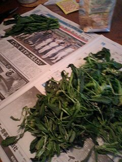 昨日ベーグルを作っている合間に暮れに干した柿、小松菜、丸大根を取り込みました。小松菜は水気を切り一株づつ間隔を空けて干し、大まかに茎と葉っぱに分けて冷凍庫で出番を待ってもらいましょう。 干し柿はガクと枝を整えてから小分けにしてこちらも冷凍庫行きです。(おやつ用) それから丸大根もいい香りに乾燥して冷凍庫へ(写真なし)そして、これは大豆を蒸してから一個づつ木槌で潰した「打ち豆」です。和、洋どちらにも重宝なので再び仕込みました。この後一週間ぐらい乾燥させてから冷凍庫行きです。冷え込みを利用して少しづつちょこちょこ作っては冷凍庫にストックすると、ちょっと安心なタコははなのでした。タコははの手帳より「平成18年11月28日 ダイエット22ヶ月28日目夕食メニュー」野菜かき揚げ、トマトジュース体重59.0