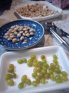 叔父宅から届きました。(ありがとうございます。)早速、フライパンでこんがり炒ったら、三人で流れ作業開始 ・殻を割る係 ニンニク絞り器でパキっ!・殻剥き係 殻から取り出したらお皿に乗せる。・薄皮剥き係 水を張ったお皿に実を浸し、グニュグニュっとしながら、薄皮を剥く。綺麗に剥けた実は、「アルミホイル」に包んでからジップロックに入れて冷凍庫で保存して、タコ姉さん好物の”茶碗蒸し”にね