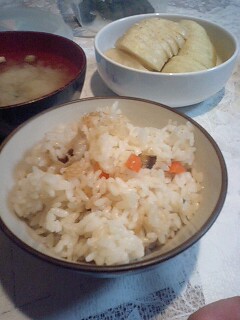 手作りのホタテの干物を使って炊き込みご飯を作ってみました。干し貝柱を微塵切りにして、下煮して置いたホタテのヒモを細かく刻み、人参をちらして、煮汁に味醂、料理酒等を足して薄味で炊き上げました。貝柱からの旨みがいい仕事してますね