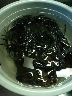 今日はでマイ干しカゴに空きが出来たので、頂き物の”わかめ”を干しました束になって一抱えも有る乾燥ワカメを水で戻してから、軽く茹でて水に漬けて冷ましたら、大まかにザクザク切って、キッチンペーパーに広げて干しカゴに干しました。 数日間、寒風に晒しカラッカラに乾燥すれば、国産乾燥わかめの出来上がり味噌汁や等にパパッと散らして頂きまーす