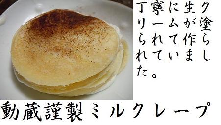 立てば フラフラ座れば ちょっかい歩く道行も 直線じゃないお仕事迅速 大雑把! 万年多動傾向 うま蔵です。我が家には 多動種が二人います。うま蔵と動蔵である。その動きは 座ること知らずで落ち着きなし 昨日の飲み会の誘いの前に 長男 動蔵メールが来ていた。動「ねぇ週末 こっちへ来る用事ない?」うま「ないよ」動「洗剤がほしいんだけど こっちに来る時に持って来て」うま「帰省の迎えの時にね」 そんな事を気にかけていたのでお泊り飲み会の話に応じた。サプライズで 息子のとこへ行って一緒に ご飯食べてデートしよう! しかし 動蔵は金曜日に帰って来た。動「あっ!すいません帰って来ちゃいました。」うま「バカたれ!タイミング良く そっちへ行く用事作って日曜日には 行こうと思っていたのに」 うま蔵は そのまま家を空けお泊り飲み会へ日曜日の夕方に帰宅した。 その夜 寮へ帰った長男からメールが入る。「冷蔵庫の中にミルクレープがあるから食べて」冷蔵庫を探すと小皿にミルクレープがあった。キッチンには 私の必需のブラックのドリップコーヒーが3L(うま蔵は 1日1L飲みます)きれいに片づけられたキッチン 息子にメールする。「ありがとう 美味しいです。頂戴してます。」長男の日々の雑な仕事からは想像できないものだった。丁寧に丸型に抜かれたクレープにココアのトッピング無駄な買い物をしないで家にあるものだけで作った(うま蔵は 無駄な買い物を許していません)たぶん 私の誕生日を意識したんでしょう。息子から照れまくりのメール「量産はできなかった(笑」やるじゃんかぁ! posted by (C)丙谷 うま蔵 素直になるのは 結構くすぐったいものである。 ありがとなぁ 動蔵!母ちゃん うれしいよぉ 思春期 真っただ中こんなじゃ 一緒に暮らせないかも・・・・って思ったけど手放すのが惜しくなってきてます。 本日の夕食 posted by (C)丙谷 うま蔵 男のシリは 蹴り上げても 出した女のひとりごとです。