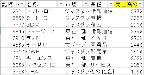 2016年実績から2017年予想への業績予想の伸び率を上位10社ずつランキングしました。伸び率=(2017予想/2016実績-1)*100 %〇売上高〇営業利益〇経常利益〇純利益〇予想配当利回りこういうところを買って、持ち続けるのもいいかもしれません。株価が割安になったせいか、配当利回りが高くなっています。〇設備投資〇研究開発設備投資と研究開発費は実績と予想の比較です。これらが伸びているということは、将来の事業拡大を見込んでいるのかもしれません。〇営業キャッシュフロー〇現金等営業キャッシュフローと現金等は昨年と今年の比較になります。(まちがえやすい。。)これらが伸びていると会社が儲かっていることが推測されます。参考になれば、幸いです。にほんブログ村