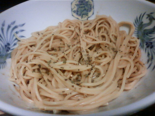 買い置きのポポロスパが出てきたので何食かスパゲティだった。まずはありあわせでできるものを作る。深めの皿に刻んだ赤唐辛子、ガーリックパウダー、ごま油大さじ1を軽く混ぜてレンジで2分加熱して麺に絡めるだけでペペロンチーノ風のになる。余ってるドライバジルと粉チーズもかけて( ゚д゚)ウマー( ゚д゚)ウマーだと余計食べたくなってお代わりとかあるw練り胡麻が余ってるので練り胡麻を絡めてみる。分離してるの混ぜないで上澄みの油分のとこだけかけてしまった(´・ω・`)けど胡麻の香りが効いてていいな。次はよく混ぜて練り胡麻を絡めてみるがちょいパサパサで麺に絡みにくいしいまいちだ。練り胡麻を絡みやすいようにごま油と鰹だしでのばしてみる。クリーミーになったが物足りナス。塩胡椒、ドライバジル、粉チーズをかけて食う。練り胡麻の上澄みの油分絡めた方が美味かったな。300gと多めにレンジで茹で置きしたのがなくなった。