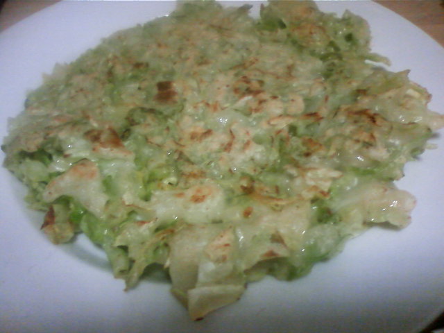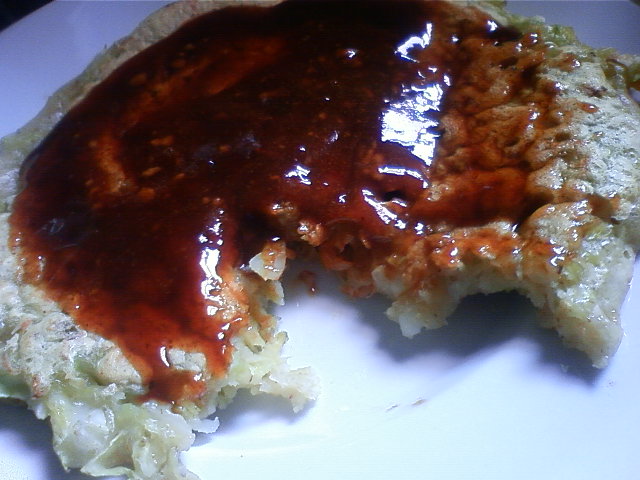 小麦粉を鰹だしで溶いて刻んだキャベツを混ぜ込んで焼いただけだ。他に味付け等は忘れてたがお好みソースに練り辛子を混ぜたものを塗る。お好み焼きとかのソースはピリッと辛い方がいい。表面は焦げ目を付けたので芳ばしいが中は小麦粉らしくべちょっとしてるかな。キャベツだけなので適当にした(´・ω・`)関西お好みソース 吊旗 キャベツ焼き