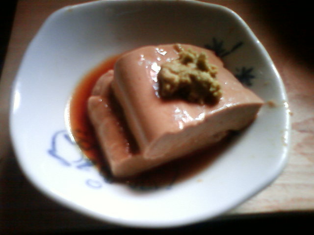 練り胡麻、ごま油、鰹だしを混ぜたのでは味が薄いので醤油と練りワサビを混ぜた。この組み合わせは胡麻豆腐と同じなので悪くはない。彩りが悪いのでドライバジルをかけた。ワサビがピリッと効いて胡麻の香りもして( ゚д゚)ウマー