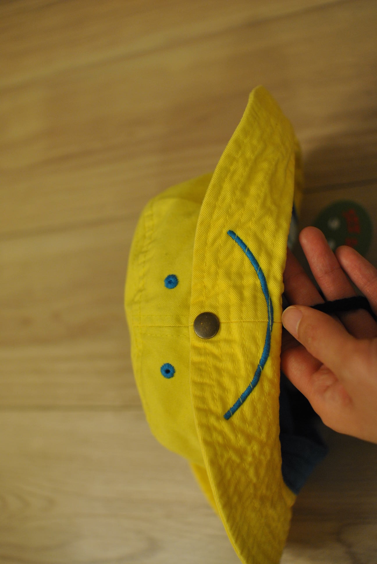 息子用の可愛い帽子を見つけて、1度は買わずに見送ったものの(帽子あるので。。)、でもやはり気になって2週間後に再度見に行って、ゲットしました。 ↑サイドです。スマイルが可愛い~♪ イエロー×ブルーの組み合わせも好みです。 保育園で使用予定です。 今つかっているものが、色もデザインも地味すぎて、お迎えの時、園庭で遊んでいる息子を見つけにくくてとょっと失敗だったかな~と、思っていた矢先に出会いました。 何より、気に入ったのは、息子が大好きなテレビ番組『おさるのジョージ』に出てくる“黄色い帽子のおじさん”と、おそろいの帽子だから!!! (カタチは全然違うけど。。“黄色い帽子”ってところが一緒!!) 色違いで濃いピンクもありました。 お値段は2300円くらい。 いいお買い物ができました♪ にほんブログ村