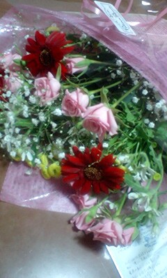最後は言葉になりませんでした。終業間際、別室に呼ばれて行ってみるとそこには私が密かに”ホーム”と呼んでいた、一番お仕事のサポートをさせて頂く時間の長かった研究室の皆さんがいらっしゃいました。すでに私の心拍数は物凄いことになっていて、一刻も早くその場から逃げ出したい心境に・・・。 皆さんの温かいお気持ちの花束 ”寄せ書きと相方さんお手製のバナナパウンドケーキ”身にあまる時間、身にあまる光栄、身にあまるお気持ち・・・・・・。こんなに幸せな、こんなに有り難いことはありません。私が泣き虫だってこと、すっかりバレちゃいました。荷物を持ち玄関に下りて行くと、そこにはまた大勢の人達が。思っても居ないまさかの展開に足が止まりそうになりました。そんなにしてくださらなくても・・・・・・。せっかく気持ちを落ち着けたのにまた大きな波が寄せてきました。私の顔はどんなになってたんだろう??????並んでいる沢山のお顔の一つ一つをココロに刻むようにしながら、一歩ずつ後去り。最後に深く、精一杯の感謝の気持ちを込めてお辞儀をして終わりました。私の3年10ヶ月。研究室の皆様のお役に立てたようです。頑張ってきて良かった。・・・と言うよりも頑張りたいと思う気持ちを起こさせてくれる、本当に温かい素敵な皆さんに囲まれてやってこれたことを幸せに思います。 ありがとうございました。
