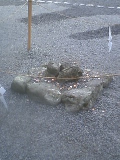 結構人が多いのにびっくり! もっとびっくりは本殿前の岩倉に人集り