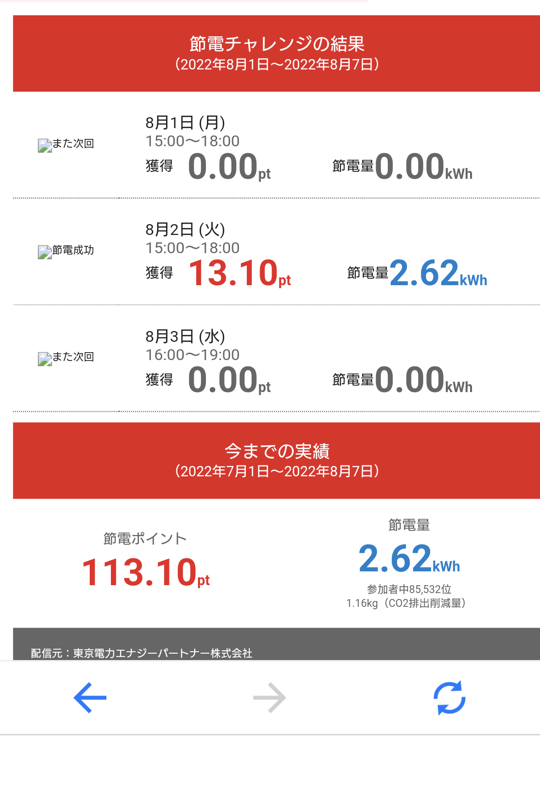 いつの間にか、節電ポイントが貯まっていた!でも、いつの間に‥仕事で居なかった日は、算定されないのかな。よくわからない(汗)