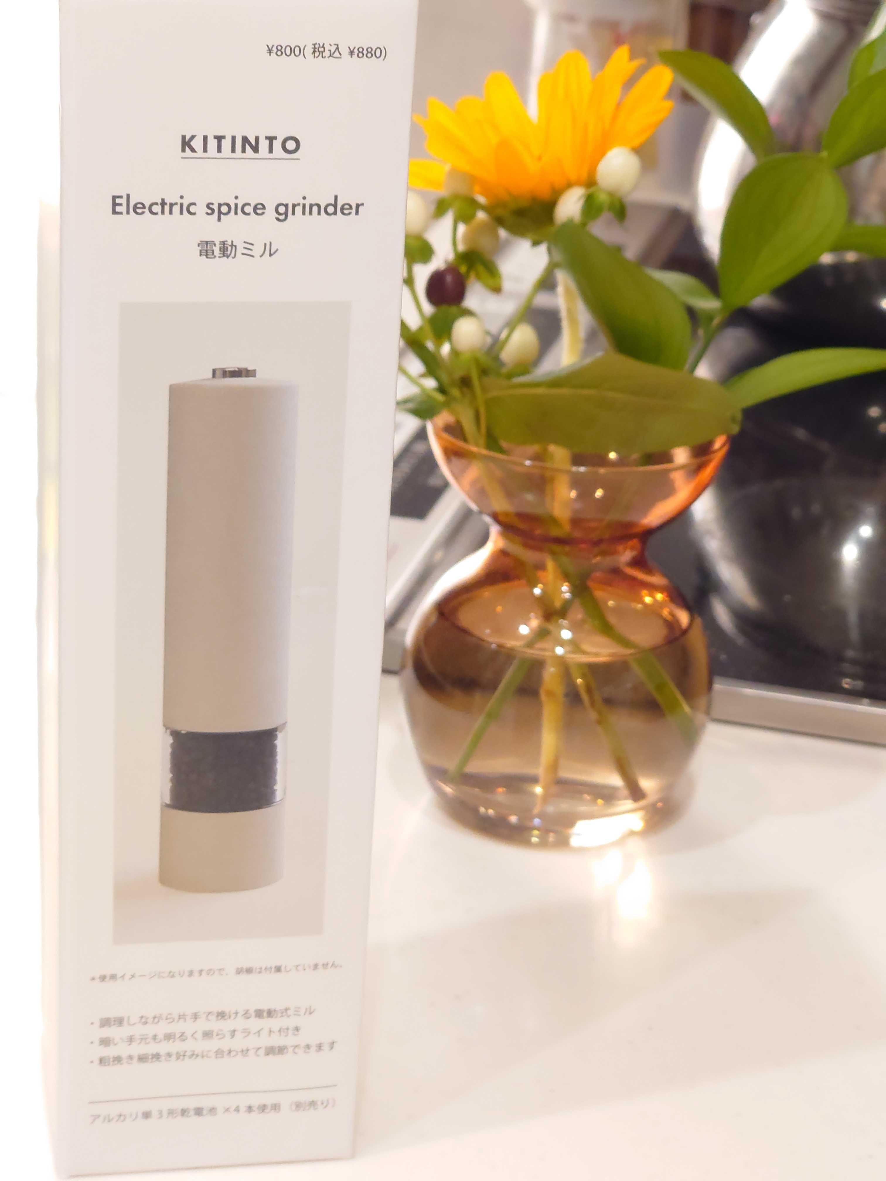 自宅で、塩と胡椒を手動のミルで使っていたのですが、なんせ面倒になってきてしまいました(汗)電動ミルがないか検索‥‥でも、なかなか値が張る物ですね(汗)ひとまず、諦めながら近くの3COINS+Plusに行くと、なんと800円(税別)を発見!とりあえず、1個購入して自宅で使用しました!原動力は、電池。単3電池4本を使用。説明書通りに準備。早速、ミルの調整して使用しました!すると、すぐに気に入りました!好きな細かさにミルできるし、なんせ楽❗ボタン一つ押すだけで、簡単でした!早くなんで出会えなかったのかが不思議!相方も早速使ってます。 800円で、電動ミルがかえるなんて、有り難いです。見た目もスタイリッシュでスッキリしてます。費用対効果は、抜群だと思います!よかったら、皆さんお試しあれ❗追記電動ミルの置き場ですが、うちでは無印良品の細長いトレイにキッチンペーパーを折り畳んで敷き、他の調味料と一緒に保管してます。https://a.r10.to/hMMd6I