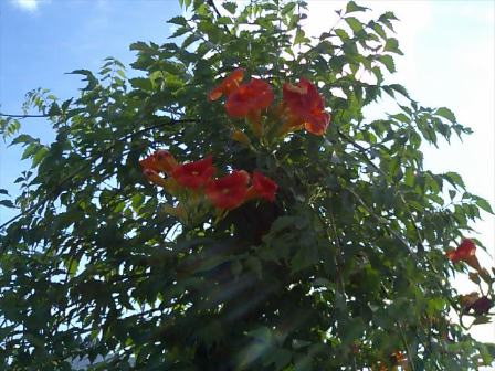 今日は、高校野球で青森の試合があったのに寝過ごしてしまい、起きたらすでに決着がついていました(^_^;) 結果は、駒大苫小牧に1点差で負け。残念~ 青森山田、かなり先取点を取っていたのに、この1点分のところで駒苫が強かったんでしょう、たぶん。お疲れ様でした。 ゆうべは特にすることもなく、買っておいたサマージャンボも300円で終わったため、夕方、宝くじを買いに出かけました。いつも通り、ミニロトとロト6を5口ずつ。いつもの売り場は、ロト・ナンバーズに強く、少しずつ当たりが出てきてはいましたが、最近ロトの2等や、ナンバーズのストレートがちょくちょく出るようになってきました。 なので、時々はずれが続いても、そこで買い続けていたいと思います!1000円とかなら、たまに当たるし。いつか来る大当たりを夢見て買いましょう当たったらヨットが欲しい・・・ どうしても、用事などでそっちに回れないとき、よその売り場で買うと、末等すら当たらない。 他の売り場にも、ジャンボが当たったりする 『伝説の宝くじ売り場』が何カ所もあるのに。きっと相性もあるんでしょうね。 8月ももう半ば、今日は特別に暑いです。 道ばたのノウゼンカズラがキレイだなーと、一枚撮ってみました。 午後のため、逆光になりました。