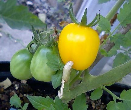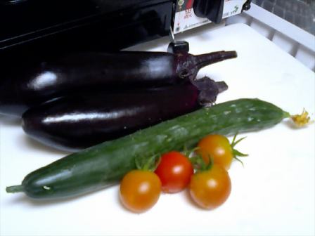 コンテナのミニトマトに、黄色い実がついていました。 アレっと思い、写真に撮っておきました。 これは、菜園の方からいただいた苗を育てていたたものです。 実が青いときから楕円形をしていて、何のトマトかなーと思っていました。 なにも知らないで、赤いトマトと同じコンテナで育てたため、赤と黄色が同時に実がつき、さらに青いのも残っていて、信号機のような状態になっています。 この黄色いトマト、名前はなんて言うのかわからないんですが、食べると中の果肉がいっぱいつまっていて、酸味が少なく、ねっとりとした食感と甘みがあります。今日は、とりあえずこのくらい採れました きのう採ったキュウリは、冷やして味噌をつけて食べた。とれたては、これが一番おいしい。 8月も終わり近くになって、やっと毎日なにかが収穫できるようになりました。 残暑がきびしければ、もうしばらく収穫を楽しめるかな?? 「毎日が一番の暑さだ~」と祖父がぼやいてます。 午後にはドラッグストアで、練乳小豆かき氷を買ってきて食べていました。かき氷器 アイスロボ3 EC-80E今年買っておけば良かった・・・ あしたはちょっとだけ、涼しくなるみたいです。 きのう、高校野球を見ていたら、テレビに「県内全域に大雨洪水注意報(警報?)」とテロップが流れたんです。外は全然雨が降りそうな気配じゃなかったのに、それでも大雨になるのかなーと思って心配していました。が、昨日のうちは一滴も降りませんでした。あのテロップ、なんだったんだろういまでは、母と「幻のテロップ」と呼んでいます。大雨じゃなくって、普通に一雨きてくれたらラクですねー。 今日の一枚は、これもご近所の菜園で撮った花。 蒸し暑い中、青っぽい紫が涼しげです