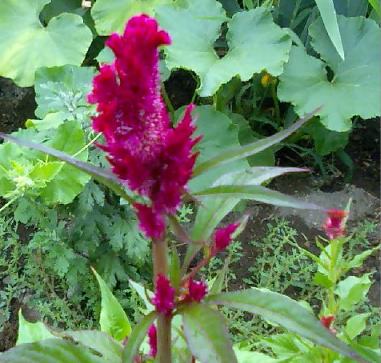 「あらー、それはどうしてかしら」 ノコはあくまで知らんふりを通そうとしていた。どう詳しく調べたところで、ツチノコの実物を捕まえない限り、その存在を立証することはできないのだ。「つまり犯人は、輸入禁止の外来生物を密輸し、何かの訳で漁船に持ち込んで逃げ去り、この土地まできて生物ともども放置したわけだ。その生物に関しては、ツチノコなんかであるわきゃないんで、まだ調査中です。ただ、この家を通って逃げた可能性もあるんで」「なるほどー。ぜんっぜん、気づきませんでした。怖いですねぇ~」「この家の周りを調べさせてもらいますが、構いませんよね?」「え、ええ(^_^;)」(それは困る)とノドまで出かかったが、何が出てきたって知らないと言い張るしかない。「じゃー、明日にでも人をよこしますんで、すんませんがご協力ください。なーに、すぐ済みますから。たった土をちょこっと採取するだけですから、よろしく」 ウシダはのんびりした口調で言い置き、出て行った。 ノコは、刑事が意外と早く帰ってくれたのでホッとした。 が、刑事がテーブルや椅子に触れた手のひらの中に、粘着テープを隠し持っていたことには、全く気づいていなかった。「にゃあ~」 寝室から、猫頭を脱いだツチノコが出てきて、「ノコ、どこ行く旅行」と、面白そうに聞いてきた。「旅行じゃなくて逃げんの!ランナウェイわかったか」 <つづく>-------------------------------------------------------------- ツチノコ物語、最近ちょっとイラストが少なくなってます。 これは、私が暑気あたりを起こしているためです。 元気になったら、また描きますね ミステリーの新連載も、8月の頭かお盆過ぎからと思っていましたが、ちょっと遅れています・・・っっでも、なんとかぎりぎり8月のうちには始めたいです良かったらまた、木曜ミステリーにお付き合いくださいませ 高校野球の決勝戦、今日は延長15回で決着がつきませんでしたねー。 駒大苫小牧も、早稲田実業も、投手が疲れてるのに投球の勢いが衰えず、15回終わりまでテレビに張り付いていました。 明日は再試合。どうなるか楽しみです 本音のところでは、やっぱり北の駒大苫小牧に勝って欲しいけど、早稲田の投手の剛速球も見事だし、ここまでくるとどっちも力は同じと思うので、いい試合を期待して明日を待ちます。 試合が終わった後、手紙を出しに外へ出たら、ナスの葉がしおれているのを発見 あわてて水やりごめんねナス。 それだけ、試合に夢中になってたんですねー。 今日の一枚は、ご近所の菜園で写したケイトウ。 口紅のような濃いピンクです。