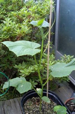 きのうは夜まで、サウナのような暑さでした。 35℃を越え、こっちでは過去3番目の高温だったそうです。 どこへも出かけられず、クーラーをかけて家に閉じこもっていました。 夜、少々あたりを散歩しましたが、このときも暑くてたまらなかったです。 今日はそれから一転、未明から雨が降り、いまは雷雨になっています。 少しは涼しくなり、ほっと一息。 このところの暑さは、梅雨明け以上でした。 それで良かったのは、キュウリがみるみる成長してくれたことです。 7月末に、低温の影響で、こんなに小さかったのが・・・ 8月の暑さで伸び始め、支柱のてっぺんで芯を摘んだら・・・ 鳥よけネットに勝手に絡み始め、ぶら下げたコンドルまで巻き込んで、 いまでは物干し竿まで伸びました。この間、20日くらいでした。 今日、はじめて夏キュウリの一番果をとりました。 株を弱らせないため、1本目は15センチ程度の、小さい収穫です。 洗ってマヨネーズをつけて食べました。甘くておいしかったです 遅まきのため、収穫期間は短いです。9月までとれるといいな。カッパルンパラッタカッパが狙っている・・・かも ところで、このキュウリは地這いだったんです(^_^;) 這わせるスペースがなくて支柱とネットに絡ませました。 どうなるのかと思っていたけど、なんとか育ってくれるものなんですねー。