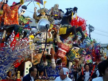 ゆうべは、八戸三社大祭の夜間運行に行ってきました。 はじめて、山車の動画をアップしてみました ちょっと小さいですが、雰囲気が伝わるといいな。 今年の祭り日程は、すべて平日だったため、人出が心配されていましたが、昨夜の混雑はすごかったです。ぶつかり合いながら走ってもお互い平気!という感じでした。 その理由は、このお二人。 野口五郎さんと、三原じゅん子さんです。 「巧妙が辻」のお二人は、山車の先頭の”華屋台”にドラマの衣装で乗り込み、沿道の観衆に手を振っていました。私も思いきって手を振ったら、ニッコリ笑って手を振ってくれましたわーい お二人とも、かっこよくてキレイでしたーーー 今回、最優秀賞の山車はこちら。 『「大江山」源頼光の鬼退治』です。 こちらは敢闘賞。 『「天下布武」~織田信長と戦国武将』。 そして、とっぷり暗くなってからの一枚、『西遊記』です。 街が歴史物語一色になる5日間です。 江戸物では、こういう山車がありました。『豪放紀伊国屋文左衛門と蜜柑船』 ちょっと、珍しい山車。仕掛けも立派、面白かったです。 今日は、山車の運行は最終日になります。 また観にいきたいなぁ。見所がたくさんあって伝えきれないです