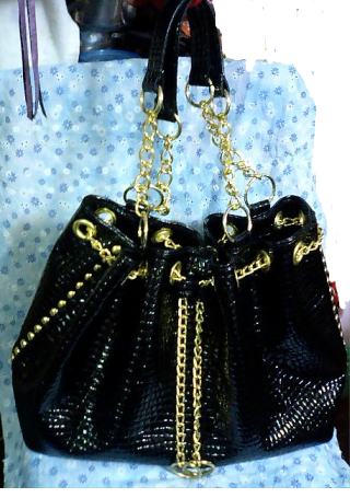「コレが落ち着いていられるかっての!!」 J君が、都志江先生と呼んだその女は、無理矢理、ノコに鉛筆を握らせた。「かりそめにもライターを自称する者が、書くことをパソコンだけに頼るとは情けない」 都志江はノコの前に仁王立ちになった。(先生いったい何の先生なのこの人は・・・) ノコはそう思いながら、仕方なく原稿用紙に向かった。『先日の、<自転車で海岸線を200キロ>の試写会では、いい意味で期待を裏切ってくれる作品と出会えた。若手映画かんとくの・・・』 ノコは『監督』と書こうとしたが、漢字が書けない「あらあら、字もマンガ字で。期待の期の書き順が間違ってるわよ。どうして『かんとく』はひらがななの?」「あーあの、漢字書けなくなってるから、いまはとりあえずひらがなで」「なにぃぃ???」「漢字が分からなかったら・・・どうしたらいいと思う?」「パソコン入力するとき変換しようと思って・・・、」「辞書を引け」 都志江は、ドンのデスクから古く分厚い広辞苑を取り、原稿用紙の上にドスンと置いた。「コレが生徒だったら、辞書のカドで頭をヤツガシラ(ボコボコ)にしてるところだよ、ったく」(ひえええぇ)ノコは逆らえず辞書を引いた(えー、50音も忘れてる) 都志江は半泣き状態になっているノコをにらみつけた。 この騒ぎを聞きつけ、カートからそーっとツチノコが頭と目だけを出している。<つづく>-------------------------------------------------------------- すごい雨でした。3日連続、梅雨明けの時のように降り続き、とうとう稲妻が3分ごとに光りはじめました。 用事で出かけていて、傘をさしているのに髪から足までぐっしょりになりました。 滝のように降っているため、かがみながら走ると、ふと、あるところで雨が弱くなる。 おかしいと思って振り返ったとき、いままで歩いていた場所に、豪雨が一点集中でたたきつけているんですよね。 しかも、激しいその雨は、だんだんとこっちに向かってくる 何だ、これは何なんだと、いっしんに家まで走りました。 雨に追いかけられる経験は今日が初めてです。 家に帰ってからも雷が鳴り続けて、しばらくパソコンを開けませんでした。 その間、ガラガラ、バシャン!!って、どこかに落ちた・・・ような気がします(^_^;) 今日の写真は、DECODECOさんのリクエストで、昨日購入したバッグを載せます。ほんとは載せたかったんですけど、写真を撮っている時間がなかったんですよね。 後ろが散らかっているため、適当に消しゴムで消しましたw チェーンじゃらじゃらで、ハデですねぇ モノを入れて肩にかけたら、ラクに背負えて気軽に使えそうです。 ついでに、ブルーグラスで買った1900円の黒いお財布。 これは使いやすかったです 一個しか残っていなかったから、けっこう人気があったに違いないと思いました。