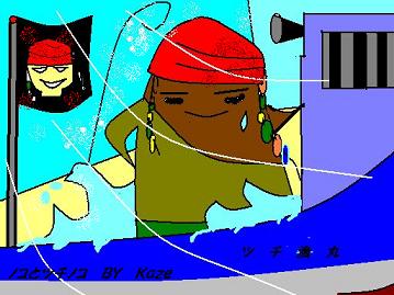 「漁船に隠れて来たの?」「船、魚ある、食べたいっぱい、・・・乗った毎日、憶えた運転」「はぁ・・・」 ノコと母はツチノコの話を整理した。「自分で船を運転して、ここまで来たの?」 ツチノコは、こくりとうなずいた。「出した、船、夜、だれもいなかった」「なるほどすごいわねー」 母が感心した。「光った水面、船走った、満潮に乗って」「キレイだったでしょー」 母はうっとりした。「それはつまりー」 ノコの目が据わった。「漁師が水揚げした魚を食い荒らしたあげく、その船を盗んで逃亡したってことよね」 ノコはため息をついた。「アンタ人聞き悪いこと言わないでよ。ツチオは悪いことだと思ってしたわけじゃないでしょ」「船、借りただけ、返す、そのうち」ツチノコも平然と答えた。「いま船、どこにあるのよ」「置いてきた、近くの川、船あった、いっぱい」「そこボートやヨットの不法係留地じゃん!!漁船置いてきたら目立ちまくりだよ。いままで騒がれなかったなんて、おかしい・・・ああ、でもこれからシーズンだから」 ノコが言った瞬間、電話が鳴った。受話器を取った。「あのー警察署のウシダと申しますが」 ノコは固まった。<つづく>-------------------------------------------------------------- 今日も暑いです~~~ 今回は、ツチノコをパイレーツ・オブ・カリビアンのジャック・スパロウ風に描いてみました 船からザップンザップン水が漏れているのは、パイレーツ・オブ・カリビアン、第一話のパロディです。 デッドマンズ・チェスト面白そうーーー 如月睦月さんはもう観にいったそうです。いいなぁ。 私は水曜日のレディースディ(1000円)を狙ってるので、今週の水曜は行けず、次の週にやっと観られそうです。もう、お盆(^_^;) それまで、本のほうも読んでおこうかな??パイレーツ・オブ・カリビアン(デッドマンズ・チェスト) やっぱり、観るまでストーリーは知らない方がいいのかな。 観てきた人たちから、「こうこうこうだった」と聞いているから、どんな感じかだいたい想像はつくんですが それでも、楽しみは観るまで取っておきたいっ 今日の一枚は、散歩道でみつけた、青い花。 名前はわかりませんが、最近よく見かけます。 霧の中にいるような花です。