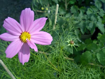 たったいま、3週間ぶりに、雨が降り出しました。 今年は、梅雨明けの雷雨もなく、日照り続きだったから、ようやく水やり休みかーと、ホッとしています。 網戸から涼しい風が吹き込んできて気持ちがいいです。 この網戸、昼、キュウリの様子を見ようとして壊しかけました(^_^;) 縁側が暑いから、網戸のはしに寄りかかって眺めていたんです。 そしたら、バチンと音がして、網戸の上のスチール(?)部分が曲がって外れた。 引いても押しても動かなくなり、ちょうどハチも飛んでいたから何とかしなければとばかりに、昼食も食べずに網戸と格闘しばらく倒すことすら出来なかったけど、なんとか、外すことができて、溝にはめ直しました。 毎日、網戸の薄い枠に寄りかかってコンテナを見ていたから、とうとう疲れたんですね こんどから全身で寄りかかるのはやめようと思います。 でも、最近、少しずつ痩せてきたから大丈夫・・・かな?? 夜食を食べないで、ハーブティだけ飲んで寝ているんですよー。 10日くらいで、みるみるお腹がへっこんできました。まぁ、暑くて食欲が減退しているせいもあるかもしれないですが。 あとは、どうしてもお腹がすいたらヨーグルト ずっとケフィアを食べていて、2,3日前から、またカスピ海ヨーグルトも食べ始めました。母がTV通販で買った、ヨーグルトメーカーでカスピ海ヨーグルトを作ると、お餅みたいな粘りがでて、不思議な風味になります。 カスピ海ヨーグルトって、普通もう少しとろとろじゃなかったっけ?? なんだかマシュマロみたいにビローンと伸びて、ふわふわの食感は初めての体験。 生クリームを混ぜて作るともっとおいしくなるんだそうです。 これを冷凍庫で冷やしたら、アイスクリームみたいになっていいかも!どんなヨーグルトも自由自在に作れます。ヨーグルトメーカー ヨーグルティア ゆうべは、摘んだバジルをソースにして、スパゲティーにのせて食べました。 ピリッと新鮮な風味があっておいしかった 今日の一枚は、道ばたで撮った、コスモスの花。 8月も半ば近くになり、しだいに群生するようになってきました。
