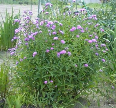今日は午後から、冷房を止めて扇風機だけで過ごせるくらいに暑さが落ち着きました。 しばらく(一週間)宝くじを買っていなかったので、夕方の買い物がてら売り場まで歩くと、まだまだ蒸し暑いです。 買いに行ったということは、そう、前回の分は外したんです。 仮に当たっても、きっとまた買いに行くんでしょうけどね。 帰りに100均で、秋野菜用のプランターを買ってきました。横幅70センチ、深さ20センチくらいの大型プランターが、ひとつ100円。 歩きだから、今日は5個。今度また、荷物が少ないときに買いたしておきます。 秋はほとんど葉もの・・・になるかな? 虫と台風対策も大変だし、何を植えるかは、まだ検討中です。雨よけハウス(A-25)0325アップ祭5 0330アップ祭5こういうのが置けたらいいなぁ 久しぶりにじっくり見たけど、スーパーの野菜、高いですねー この頃、野菜は近くの直売で買ったり、自分のところで採ったのを食べたりしているから、実感がわかなかった。 初夏の頃の日照不足と、最近の日照りがこたえているんでしょうか。 売れ残って時間がたった野菜が、外れのワゴンに割引で載っていて、そっちに人が集まる。 この調子なら、来年はなんとかスペースを確保して、もっといろいろ植えた方がいいかもと、本気で思いました。 スペースの都合で、日当たりがあまり良くない場所においたわりには、なんとか育ちました。 大変なのは水やりだった。ご近所の菜園でも、雨どいを野菜のところに持って行ったり、暑さがきびしいときは活力剤を挿したりなど、いろんな工夫をしているから、時々のぞかせてもらいながら、なんとかやっていきたいです。 今日の一枚は、またご近所の菜園から。 これも、名前はわかりません。淡い紫がきれいな、初秋の花です。