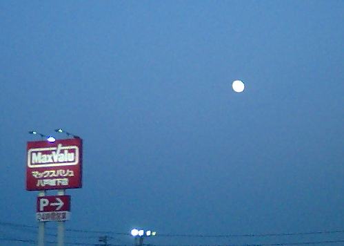 ノコはツチノコの指摘した誤字を直し、原稿を完成させた。 すっかり夜になっていた。「宿題できたら、深夜にスクリブル出版へ持って行くか」 ノコは、宿題をツチノコにやらせながら、スーパー天狗抜で夕食の弁当を調達してきた。 朝、昼と同じように、釘打神社の裏を通ると、社務所から『ジャッ、ジャジャジャジャッ、ジャジャジャジャッ、』と、水戸黄門のテーマが聞こえてきた。 宮司の御神 菊之介が、社務所の中で時代劇を見ているのだ。 そうなると、テレビの前から1歩も動こうとしない。社務所には、四方に窓があるから、気づかれないよう通り過ぎなければならない。 そう思ったとたんに、枯れ枝を踏んでしまった。バキッと、すごい音がした。(やばっ) ノコは社務所を見た。菊之介は気づいていない。(やっぱ、水戸黄門に夢中になってると気づかないのね) と思って、堂々と音を立てて歩き始めると、社務所のサッシがガラッと開いた。「何者だ!!」 とっさに、ノコは草むらに隠れた。菊之介は、いま足を悪くしているから、ゆっくり戸に向かって歩いていただけだったのだ。(やっば~) 額に青筋を立てて周囲を見回す菊之介が、戸を閉めてテレビの前に戻るまで、ノコは息もできずにいた。<つづく>-------------------------------------------------------------- ゆうべ観ましたダ・ヴィンチ・コード。 おとといから、さんざんアフィリを張ったので、今日はテキストリンクだけにします。ダ・ヴィンチ・コード デラックス・コレクターズ・エディション 一度、映画館で観ているから安心して観られました。 ところが、ルーブル美術館きれ~とか思っているうちに、な、なんと爆睡w ・・・・。 母が、「信じられない!!」と言ってました。ハイ、私も信じられません。 これはサスペンスなんだけど、映画はとっても重厚で静かに進んでいくから、つい寝てしまいました。 私には、どんなに大好きな映画でも、音楽がファ~ッとしてたり、展開がスローだと、睡魔に襲われてしまう、非常に怪しからんクセがある ジョニー・デップの出演した映画で一番好きな、「ナインスゲート」も、ヨーロッパを舞台にゆったりと進む物語だから、2回寝ました。洋画40◆ナインスゲート デラックス版 そして、やっと3回目のとき、全部観ることができた。 DVDだったら何回も観られるけど、これを映画館でやっちゃったら勿体ないなぁ。 さて、今日の一枚は、ゆうべSCの駐車場で撮った月。 一昨日が十三夜でしたね。今日も天気が良かったから、満月を見られそうです。