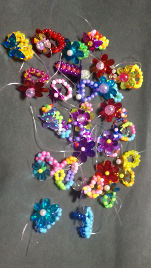 今年の私の作品はビーズのアクセサリーです。凝ったものではなく簡単だけどキラキラしてて子供達が喜びそうなデザイン&価格です。沢山作って沢山の子供達が買ってくれたらうれしいな~o(^-^)o