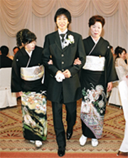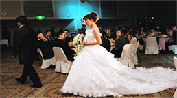 メインを先に降壇した婦人は重い打掛けを羽織る新婦が