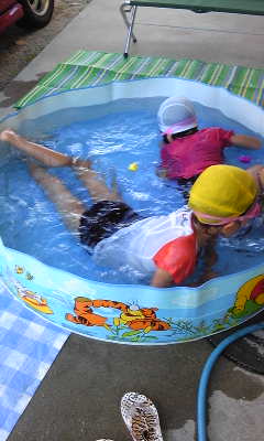 今日は暑かったですねぇ・・・。子ども達も暑そうで、思わず小さい頃に使っていたプールを出して久しぶりに我が家で水遊びをしました。ちょっと小さくて無理のあるプールでしたが子ども達は気持ちよさそうに遊んでくれました。また、余裕のあるとき、大きいプールか海水浴場に連れていってあげたいです。