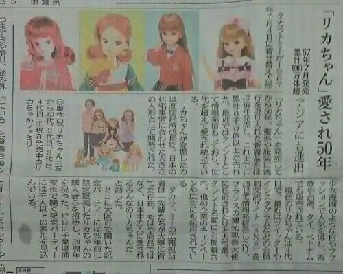 リカちゃん人形の記事が愛媛新聞に掲載されてました(*^^*) 1967年7月4日に発売されたということ。 なんと、私と同い年。 生まれ月もおなじ。 リカちゃんは、4日だけど、私は、12日。 なんか親近感わきます。 子どものころ、親が、リカちゃん人形とリカちゃんハウスを買ってくれて遊んだ記憶があります。 リカちゃんの洋服が経済的に買うのが困難だったのか、もっぱらきせかえは母が手作りで可愛い服を作ってくれていました(*^^*) 懐かしい。 我が子はリカちゃんではなくぽぽちゃんでしたが、いつの時代にも人形は、大活躍ですね。 【リカちゃん】【人形】リカちゃんLD-09 かわいいバレリーナ【りかちゃん リカちゃん人形 ハウス 人形 服 ドレス グッズ おもちゃ 定番 女の子 着せ替え タカラトミー プレゼント クリスマス 誕生日 人気 おすすめ 洋服 アクセ ヘアスタイル プリンセス ガール】 【送料無料】お風呂もいっしょ ぽぽちゃん お人形<ピープル>ままごと ごっこ 女の子 おふろ・プール AI-317 リカちゃん リカちゃんハウス すてきなリカちゃんのおへや