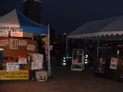 水上野外劇「まれびとエビス」20日、21日と大盛況!!今日は、雨で中止になりました。日暮れとともに始まる劇は照明から音楽と幻想的で紫川に光輝きます。スタッフの方々も生ビールや地酒、ワインを楽しんでおられます。演出は ペーター・ゲスナーさん初めてお会いしましたが日本語もお上手でワインはもちろん北九州の地酒夢天心もおいしいと飲んで頂きました。観客のみなさまがおいしいワインや地酒ビールを飲みながら野外ステージを楽しむ・・・なんとおシャレなんでしょう公演は明日から3日間となりました。まだチケットに余裕があるそうです。よかったらぜひご覧ください。真夏の夜の楽しいひとときがあります。