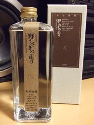 すべてが芸術!!ボトルからラベル、ボックス、味わいとどれをとっても輝きがある「野うさぎの走り」いくつもの感動がある長期貯蔵米焼酎蔵内で永い間、静かに眠り続けていた米焼酎の古酒ともち米で仕込んだ贅沢で風味豊かな焼酎の出会い「アリス」を不思議の国へ案内してくれた、あの「野うさぎ」あるいは突然、草むらの中から直線的に走り出て、深い森の中へ駆け抜けて消えていく野生のうさぎのようなピュアでクリアな酔い心地37度の高さを感じさせないきめ細かい味わい、喉ごしのよさ、まろやかな余韻 オンザロックで 水割りで爽やかに そして冷酒で優しく自分好みでお楽しみの一本この感動を皆様に ボトルの底 THE LEAPING HARE うさぎの絵 KUROKI HONTEN TAKANABE MIYAZAKI