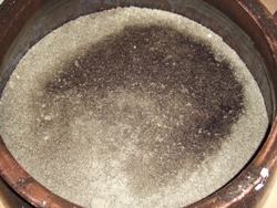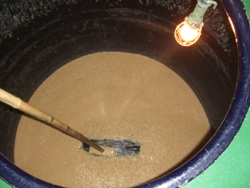昨日の続きで午後からは阿久根駅前の鹿児島酒造さんへ所長の牛之浜さんがすぐに出てこられ事務所へと案内してくれました。残念ながら総杜氏である黒瀬安光氏が急用でお休みでしたがしっかりと造りの最中の蔵内を説明しながら案内して頂き試飲もほとんどの銘柄をしました。その中にはあの素晴らしい「黒瀬安光」や「金次郎」も!!さすがに当店の自慢焼酎「ひとりごと」はありませんでした。 当然のことですよね。飲みたい方は尾池酒店でってことです。試飲では麦から芋といろいろなタイプがあり麹菌によっての味の違いや熟成による味など大変勉強になりました。黒瀬安光総杜氏の光る技は確実に現在の杜氏である弓場裕氏に受け継がれています。改めて黒瀬安光氏の素晴らしさに感動しました。出来上がったもろみは蒸留機へと運ばれていきます。まさに蒸留する前のもろみ 焼き芋焼酎を造る時は仕込みの芋を焼き芋にします。焼き芋を造る焼き機です。下段に芋を入れ24時間かけてゆっくりと焼くそうです。事務所に飾られていたので「はい、パチリ!!」とても光っておりました。芋焼酎の造り手に会い、蔵を見学し感動の一日でした。一緒に行かれたお客様も感動とおいしさの発見で楽しかったようです。またお伺いする約束をして阿久根を後にしました。