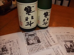 昨晩のテレビから今朝の新聞とマスコミを賑わす大ニュース 「寒北斗 吟醸」が日本一2008年秋・全国酒類コンクール吟醸・大吟醸部門で第一位を受賞福岡県産酒が初の一位ということで福岡県知事を表敬訪問しました。福岡を代表する地酒として県民の皆様に愛飲されている「寒北斗」が全国に認められたお酒になりとても喜びばしいことです。私たちも自分のことのように嬉しく思います。玉の井酒造の社長さんをはじめ杉田杜氏さん、蔵人さん「おめでとうございます」福岡県産米の山田錦のうまみを残しながら切れのあるバランスの取れた味わい全国の方に楽しんで頂きたい 「寒北斗 吟醸」 1.8L 3500円 720ml 1750円 尾池酒店より全国発送しています お問い合わせ TEL/FAX 093-881-2138 E-mail bimi@oikesaketen.com新聞四紙に取り上げられました。
