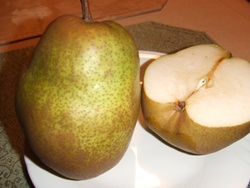 山形の果物 「ラフランス」今が旬!!待ちに待って食べ頃がきたのでハイ、このとうり!皮が少し茶色びてきましたが頭のところが柔らかくなってきたら食べ頃早すぎると硬くて甘さが足らずうまさが半減半分に切ってみると甘酸っぱいいい香り硬さもちょうどよくみずみずしさが広がるこの上品な味わい果物の中には食べ頃に気をつけないとおいしさがうまく伝わらないときがあります。熟しておいしい、とれたてがおいしいその果物の特性を知っておいしく頂きましょう!!